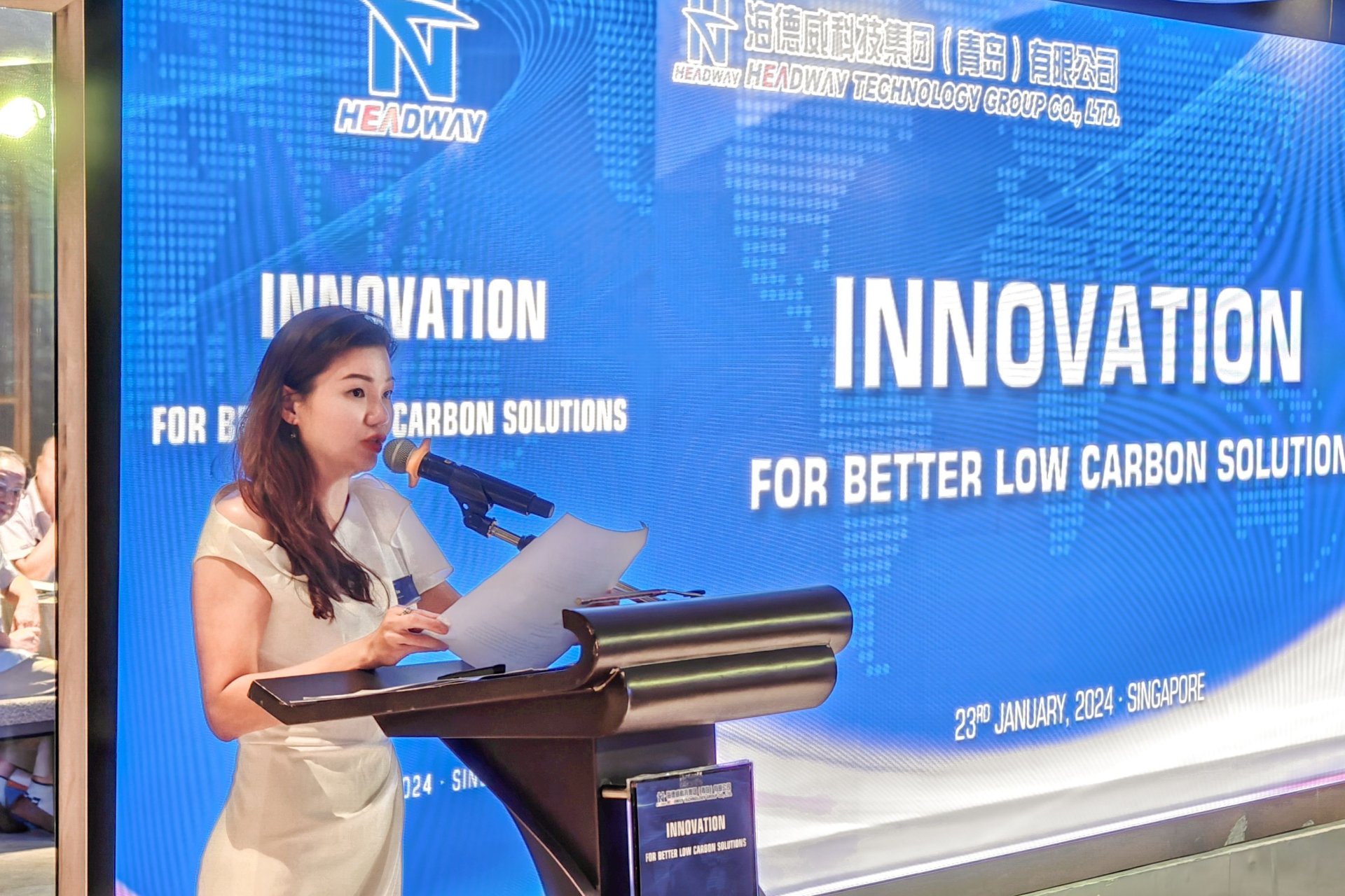 當地時間1月23日下午,海德威科技集團在新加坡Parkroyal Collection Marina Bay舉辦了一場以“以創新,持續優化低碳方案”為主題的論壇,100余位新加坡當地船東、船廠、設計院及相關綠色能源行業協會代表受邀出席,共同探討綠色低碳轉型為航運業界帶來的機遇與挑戰。